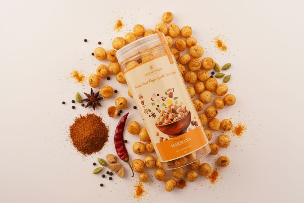 For those who like a kick — meet our Chatpata Makhana. Infused with a medley of Indian spices, from cumin and coriander to ajwain and chilli, it’s tangy, fiery, and oh-so-addictive. A true desi delight that turns every break into a flavour fest.