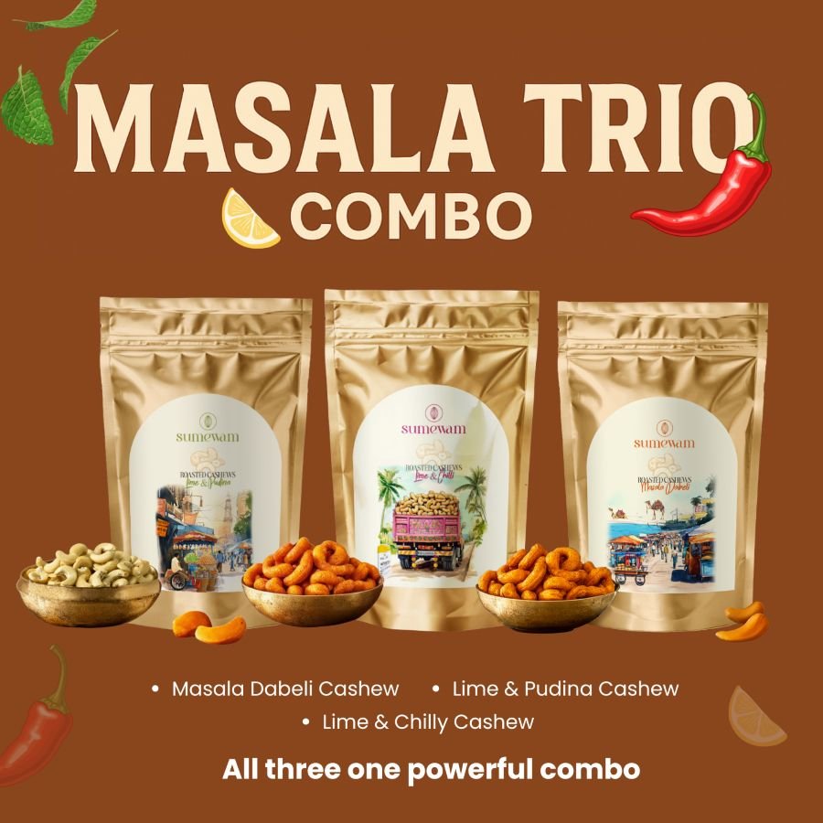 Sumewam Masala Trio – Gourmet Flavored Cashew Combo